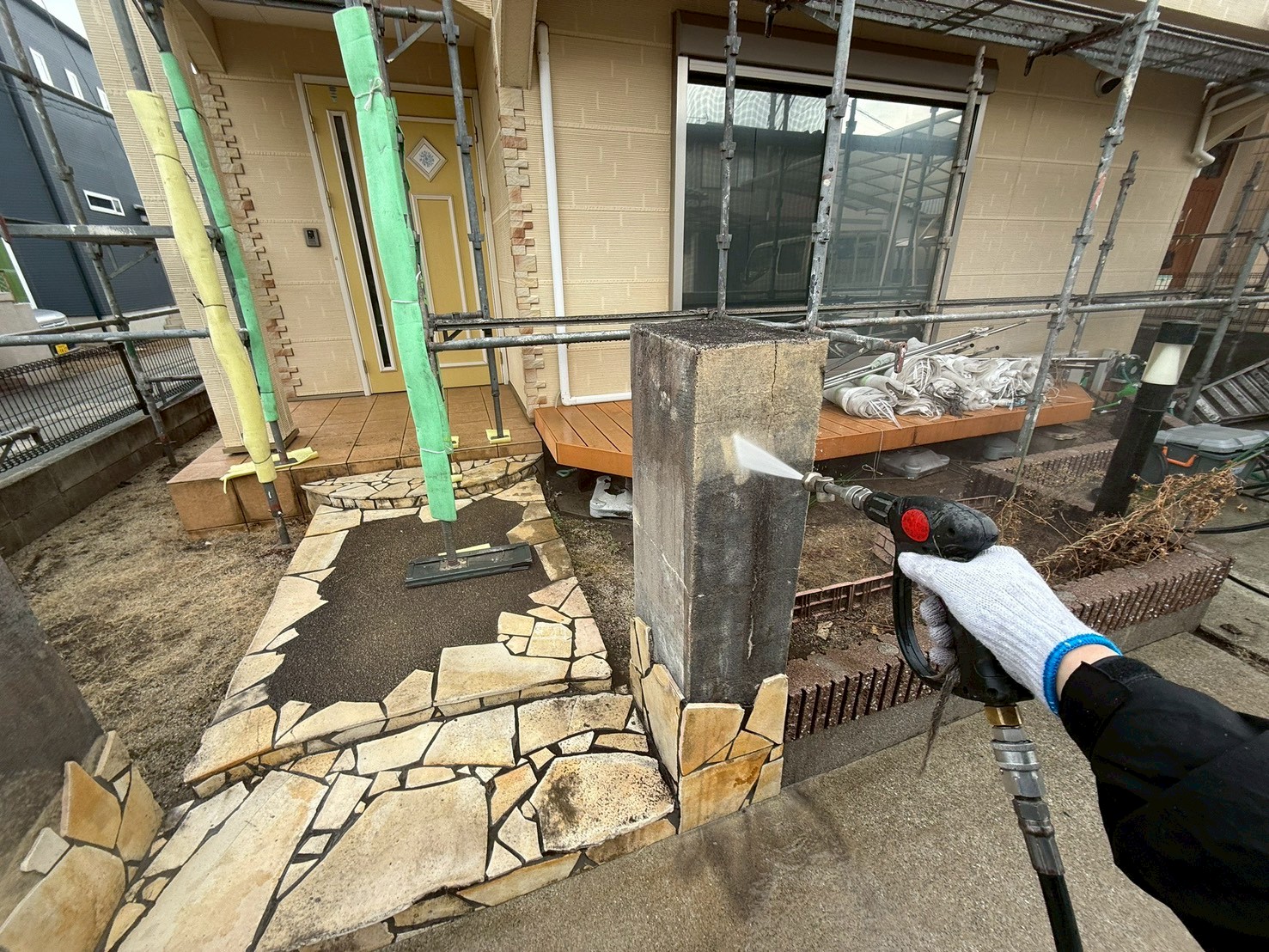 外部・門柱廻り:バイオ高圧洗浄施工前です。