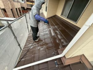 屋根・1F南面側:高圧洗浄施工前です。