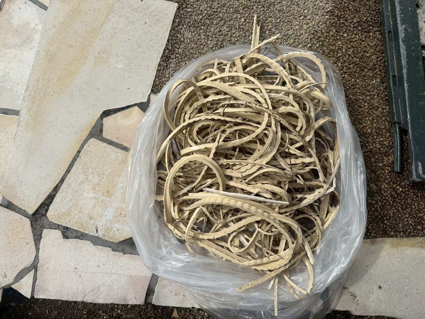 外壁・旧コーキング材撤去後の残材です。