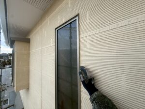 外壁・窓廻りの旧コーキング材撤去:切れないように剥ぎ取ります。