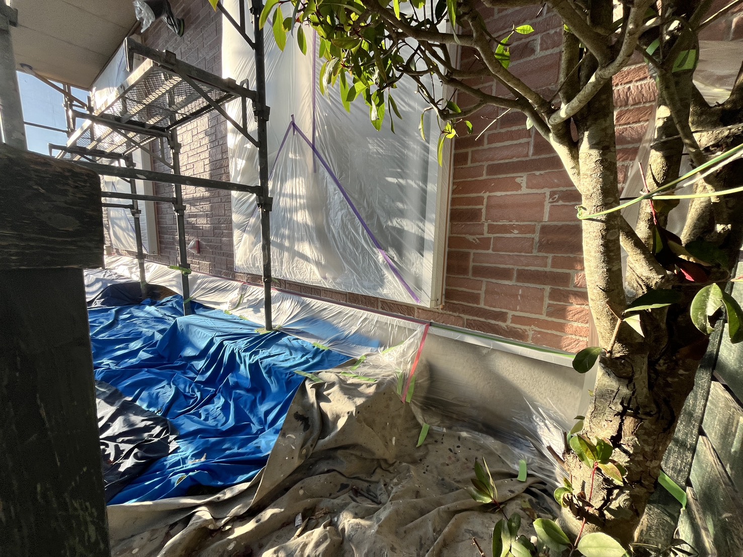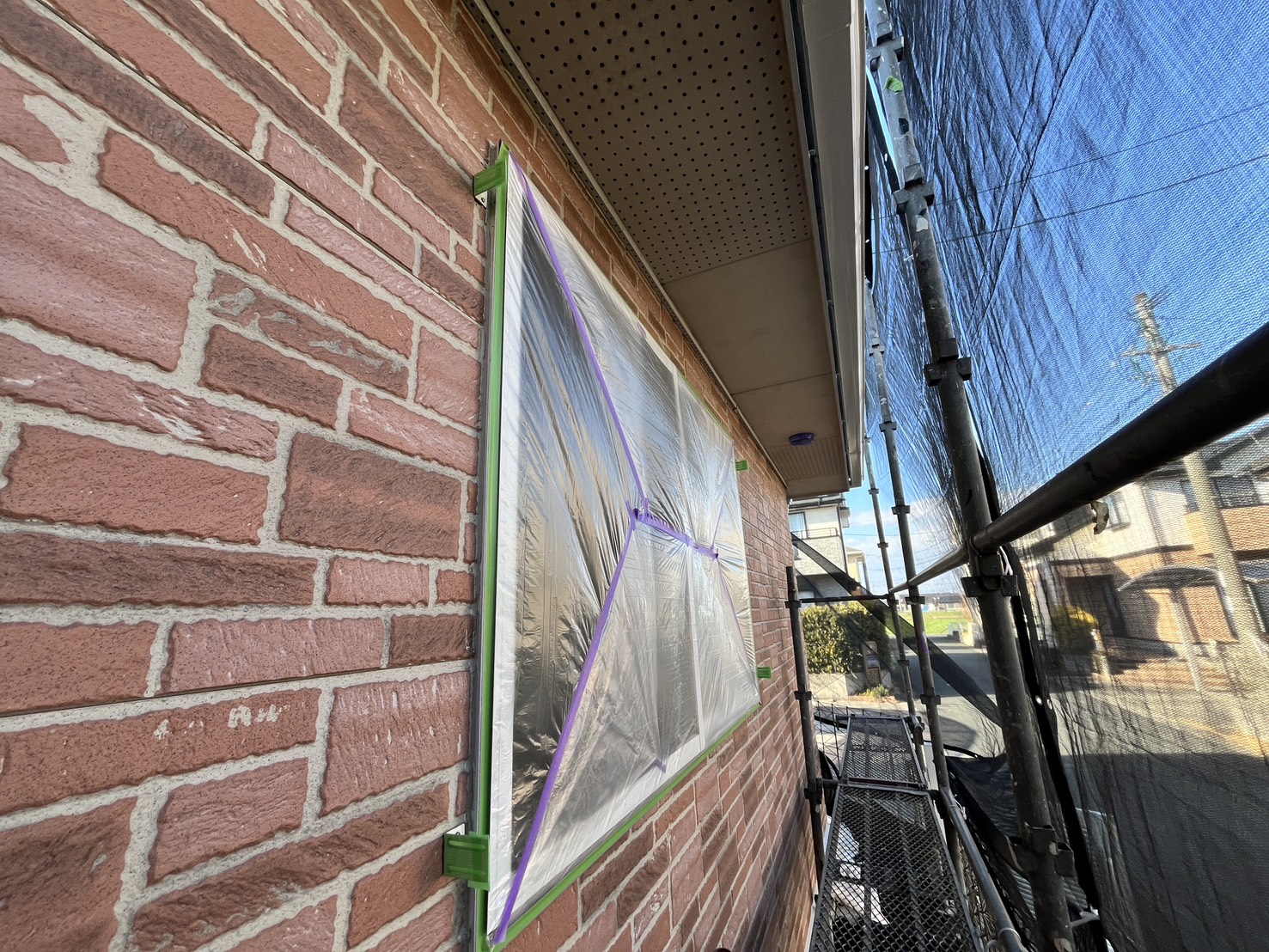 外壁・養生各箇所確認手直しの施工です。