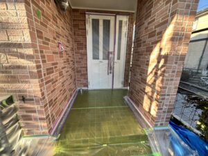 本日の作業は、外壁・養生と下塗り(水性SDサーフエポプレミアム)の施工です。