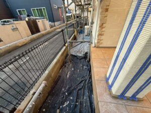 外壁・土間:専用土間シート(ベトコンシート)張りの施工を行いました。