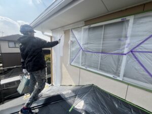 外壁・1F窓廻り面:水性SDサーフエポプレミアムの施工です。