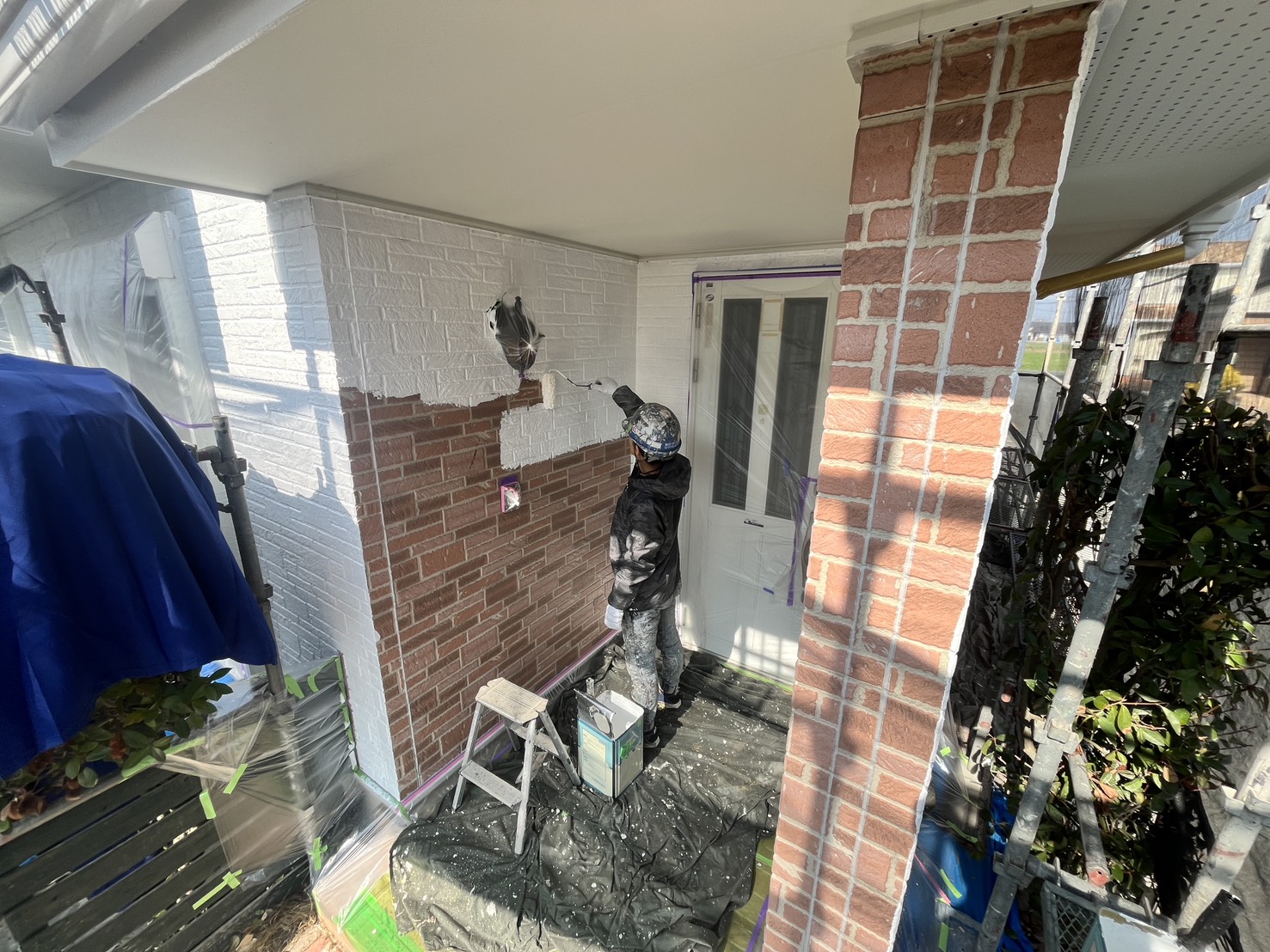外壁・1F玄関廻り:水性SDサーフエポプレミアムの施工です。