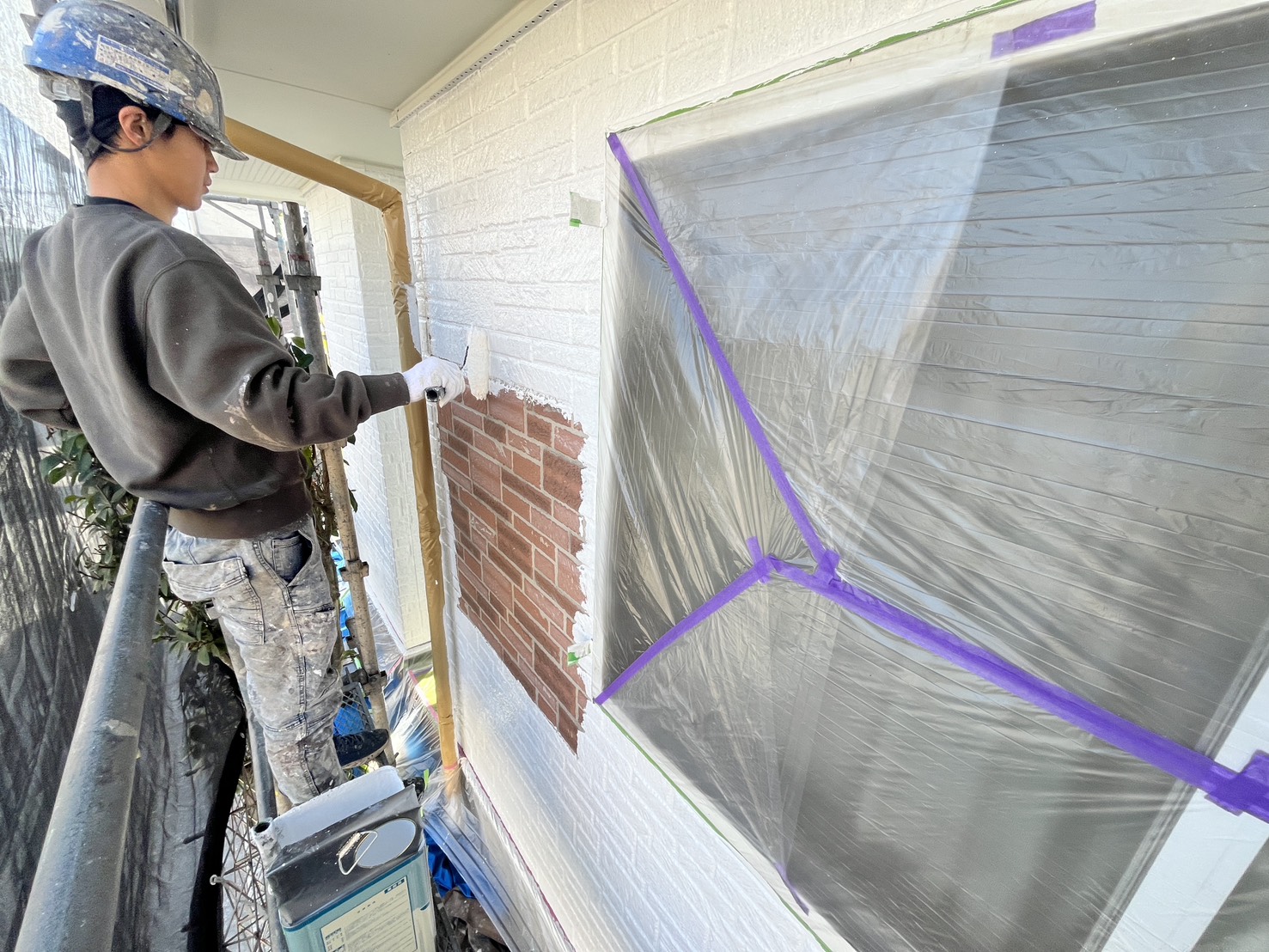 外壁・1F北面側:水性SDサーフエポプレミアムの施工です。