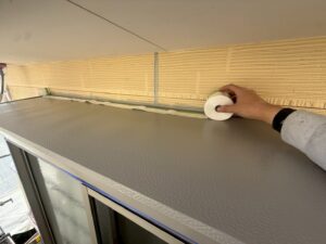 外壁・2Fベランダ床面:専用プライマー(接着剤)のローラー塗り施工です。