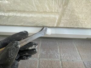 外壁・1F水切り部・エスケープレミアム無機・LN-85の刷毛塗り施工です。