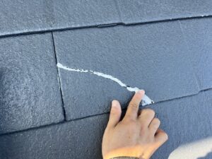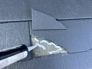 屋根・コロニアルの欠け部分・きれいに掃除を行い、接着を行います。