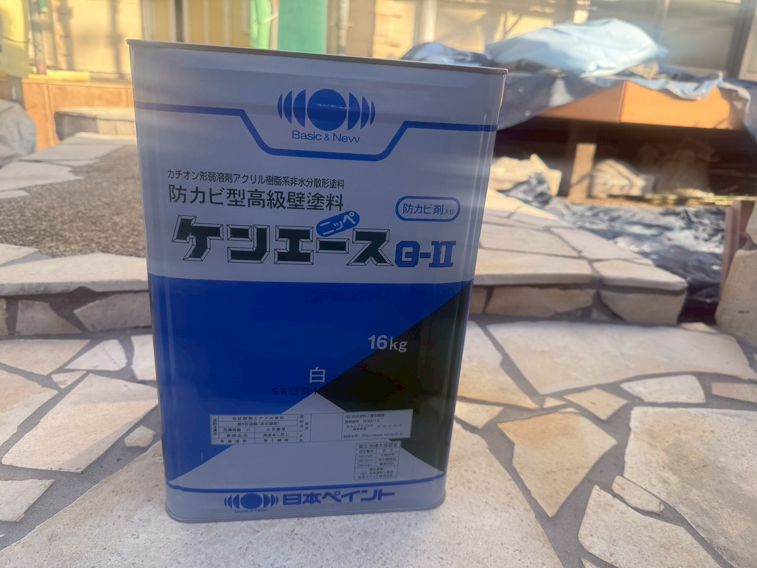 外壁・軒天・ケンエースG-Ⅱ(防カビ剤入り)の施工です。