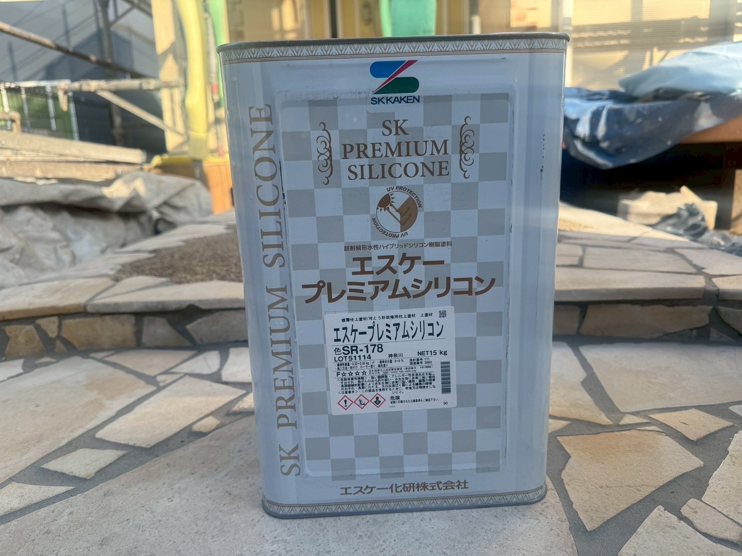 本日の作業は、外壁・養生と下地処理(下塗り)の施工です。