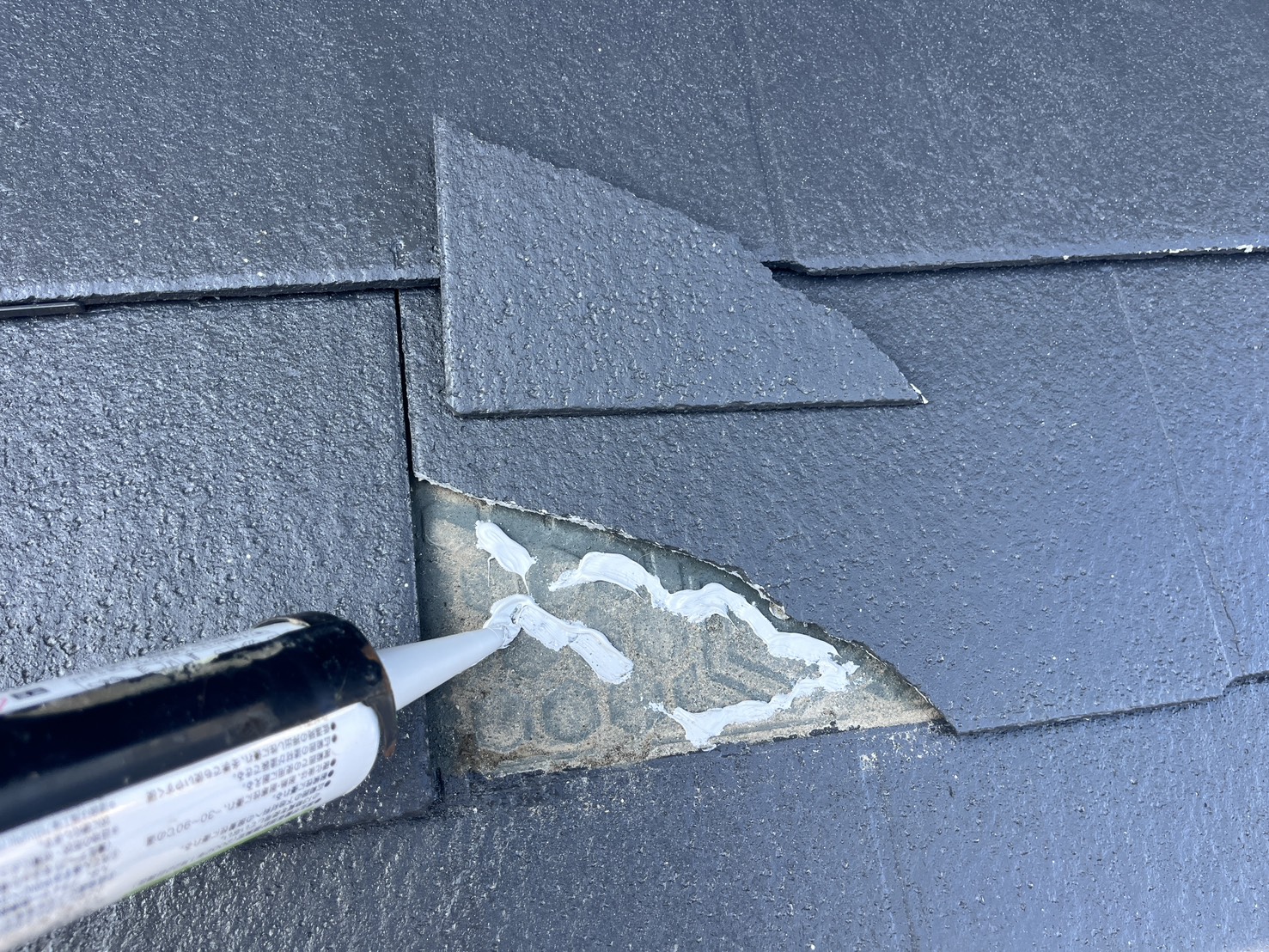 屋根・コロニアルの欠け部分・内部と外側をしっかり接着します。