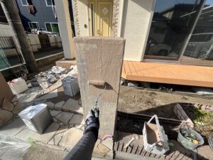 外部・左右門柱(裏表)・通気性が良い塗料で、施工を行いました。