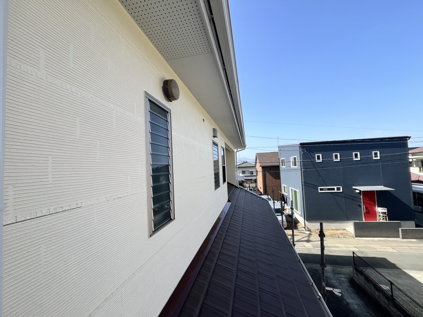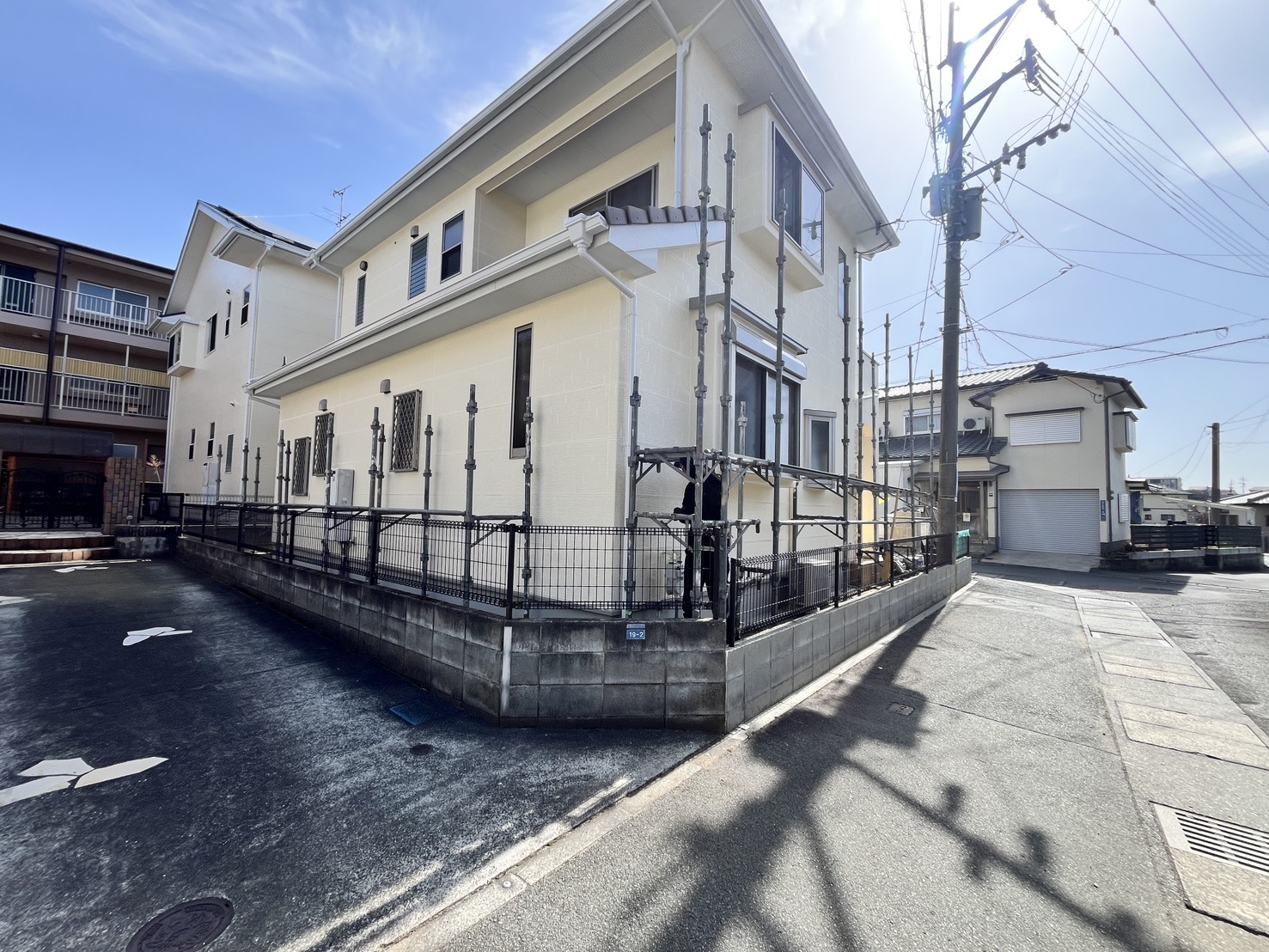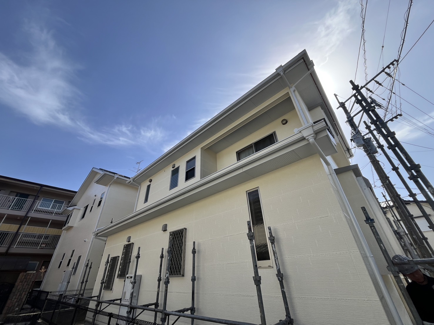 外壁・屋根・付帯部・その他:2F北西面側・最終確認検査後、架設足場解体施工です。