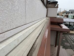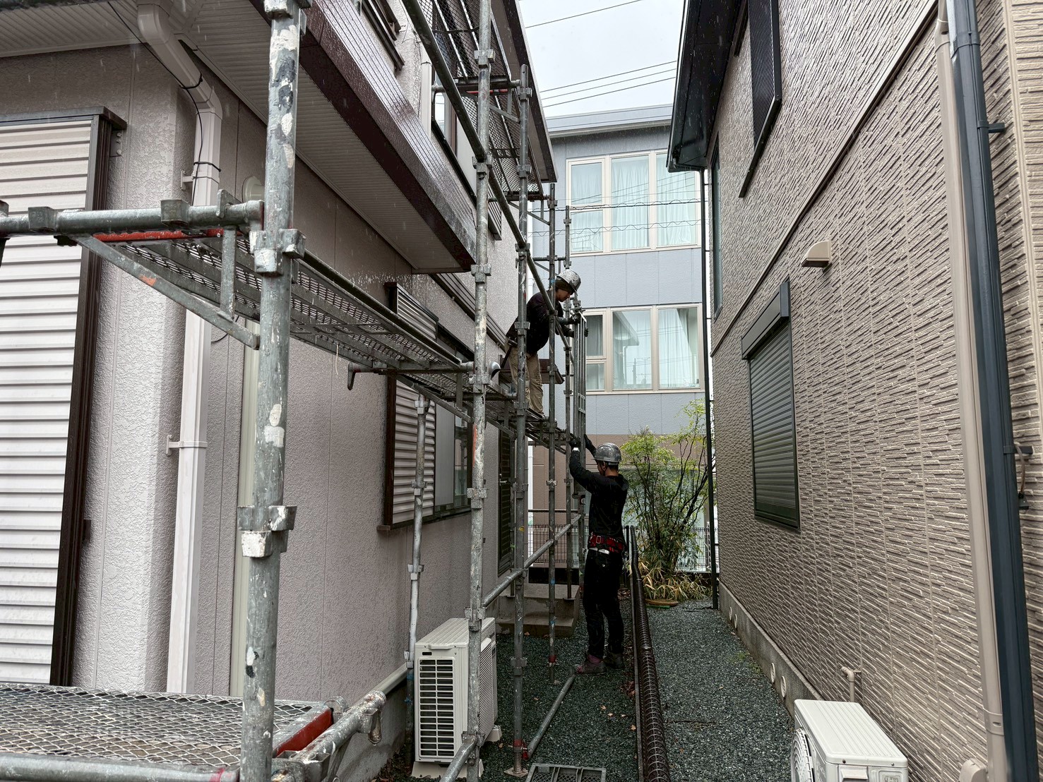 外壁・東面側・架設足場組み上げ作業です。