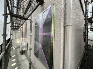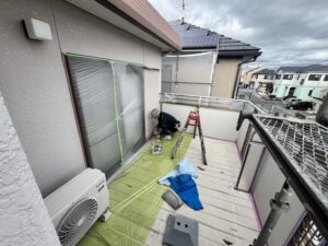 外壁・2Fベランダ内壁廻り・養生貼りの施工です。