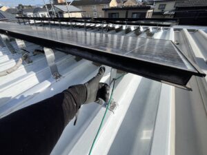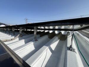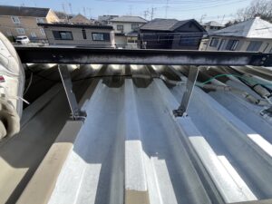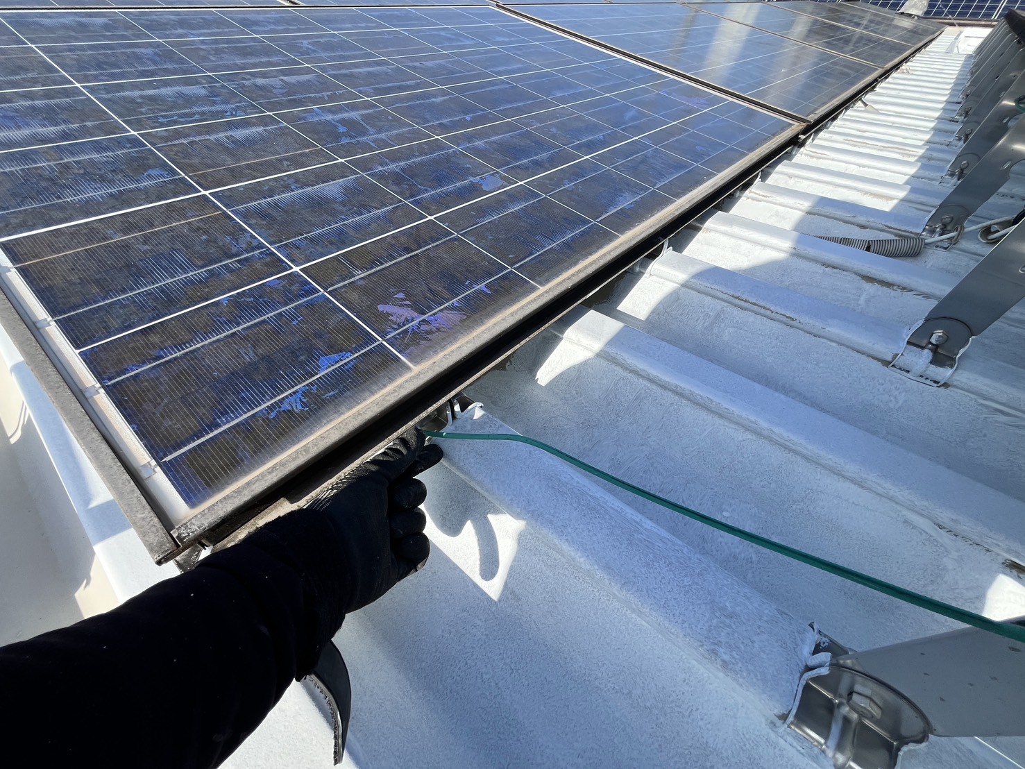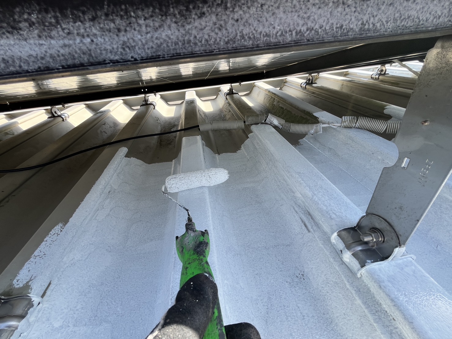 屋根・ソーラーパネル(太陽光)下の専用錆止め塗り込み施工です。