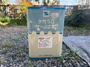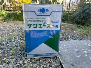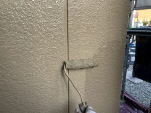 外壁・1F・上塗り仕上げ:KF無機4フッ化フッ素樹脂SC-22ローラー塗り施工です。