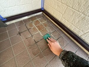 本日の作業は、外壁・養生とコーキング打ち替えの施工です。