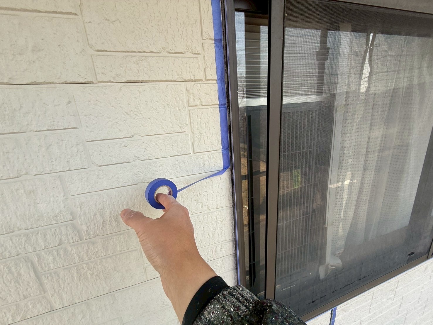 外壁・窓廻り目地・コーキング専用テープ貼りの施工です。