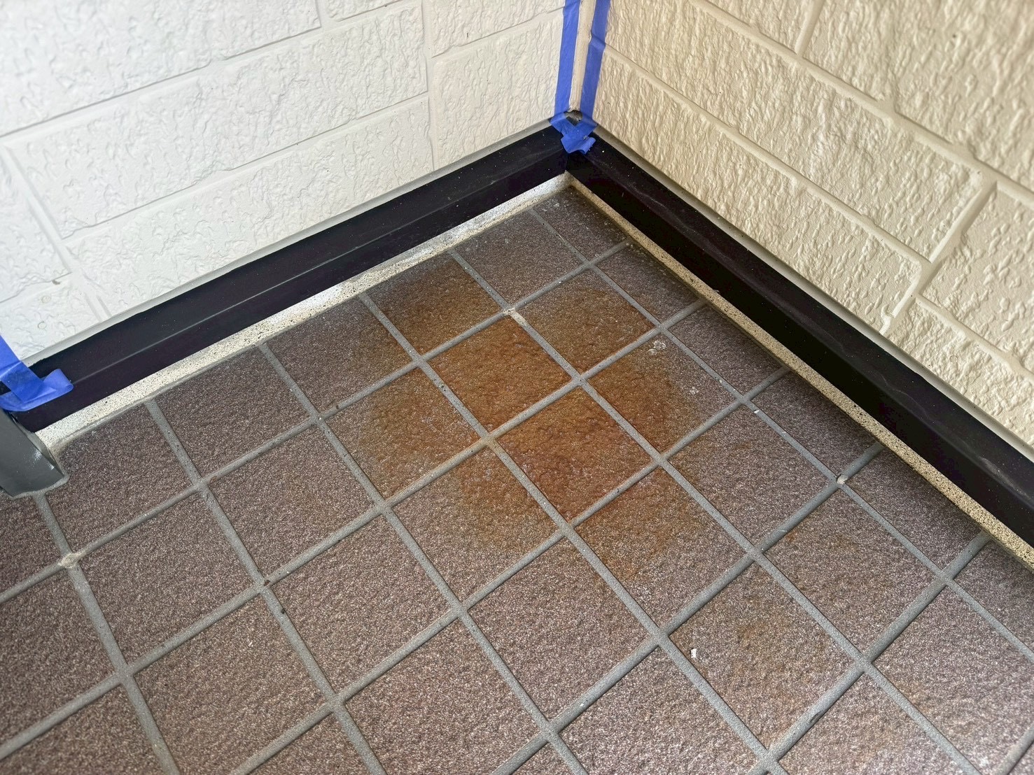 外壁・玄関タイル床面・クスミと錆取り洗いの施工です。