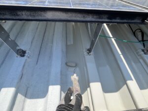 屋根・2F・中塗り:KF無機4フッ化フッ素樹脂のローラー塗り施工です。