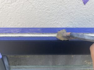 外壁・小窓廻り・専用プライマー(接着剤)の施工です。
