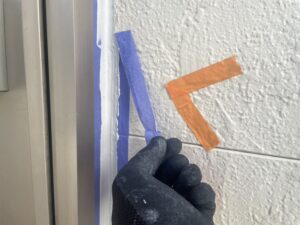 外壁・玄関ドア廻り・コーキング材が、乾燥する前にきれいに剥ぎ取ります。