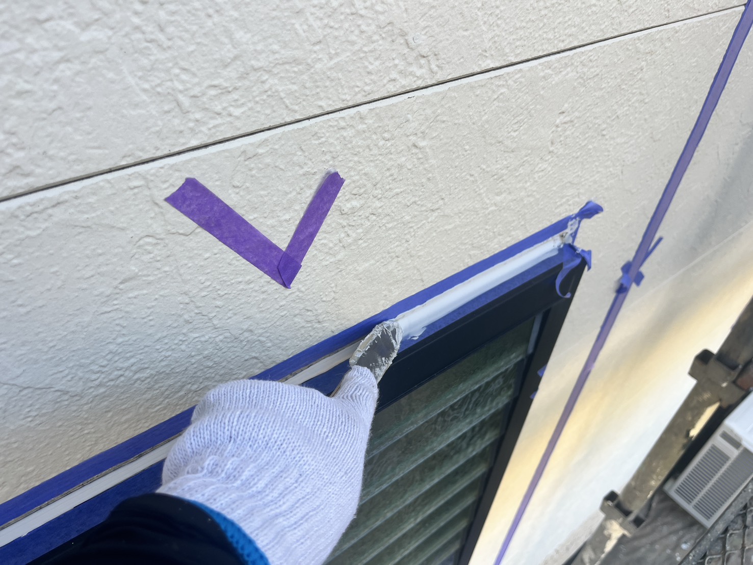 本日の作業は、外壁・コーキング打ち②、養生撤去・養生・付帯部の施工です。