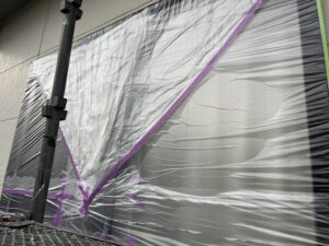 外壁・1F東面側・養生施工です。