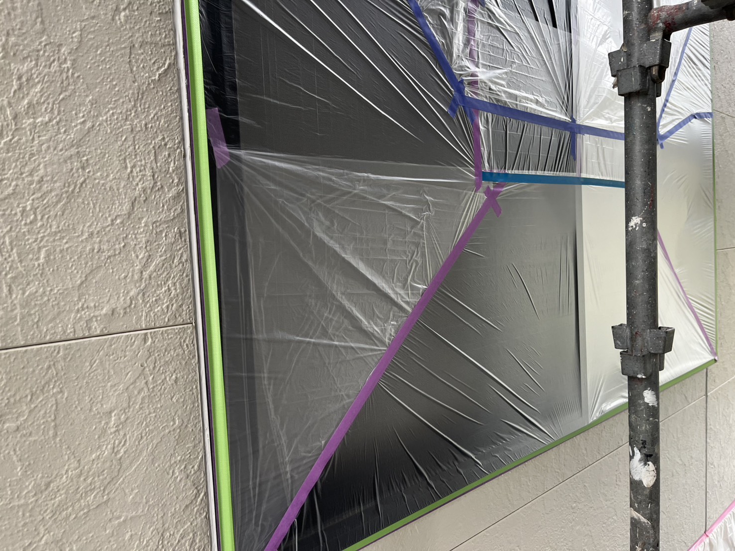 外壁・1F掃き出し窓・養生施工です。