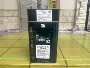本日の作業は、外壁・中塗り・上塗り:プレミアムシリコンラジカル塗料の施工です。