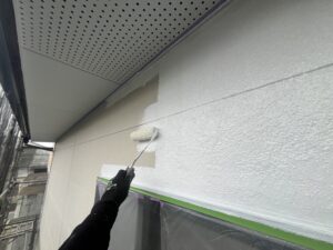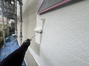外壁・1F北面側・水性SDサーフエポプレミアムのローラー塗り施工です。
