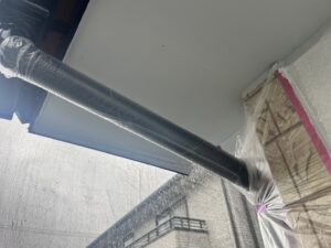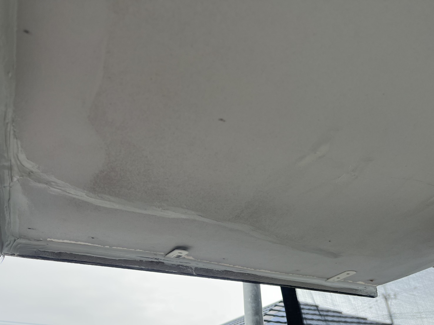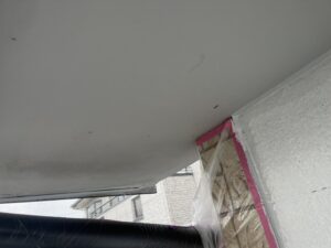 外壁・1F南面角・軒天補修施工:ケンエースG-Ⅱ(防カビ剤入り)で施工を行いました。