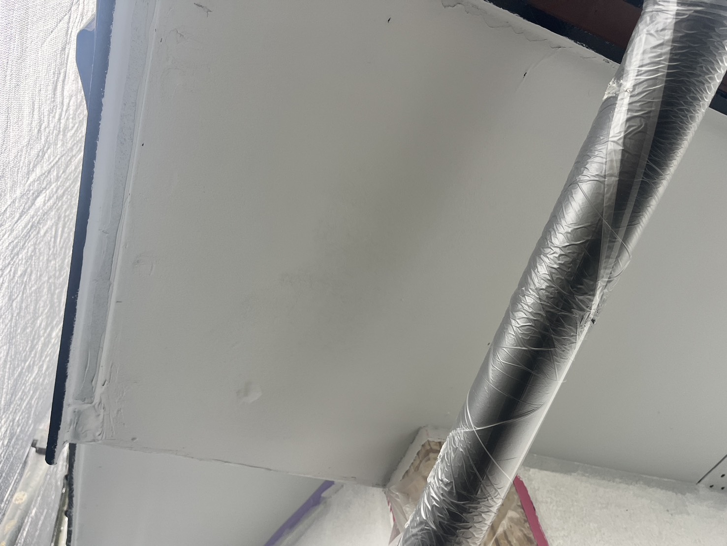 外壁・1F南面角・軒天補修施工:しっかり乾燥させます。