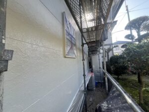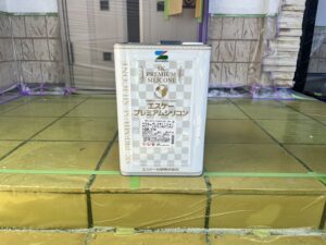 本日の作業は、外壁・上塗り仕上げ:プレミアムシリコンラジカル塗料の施工です。