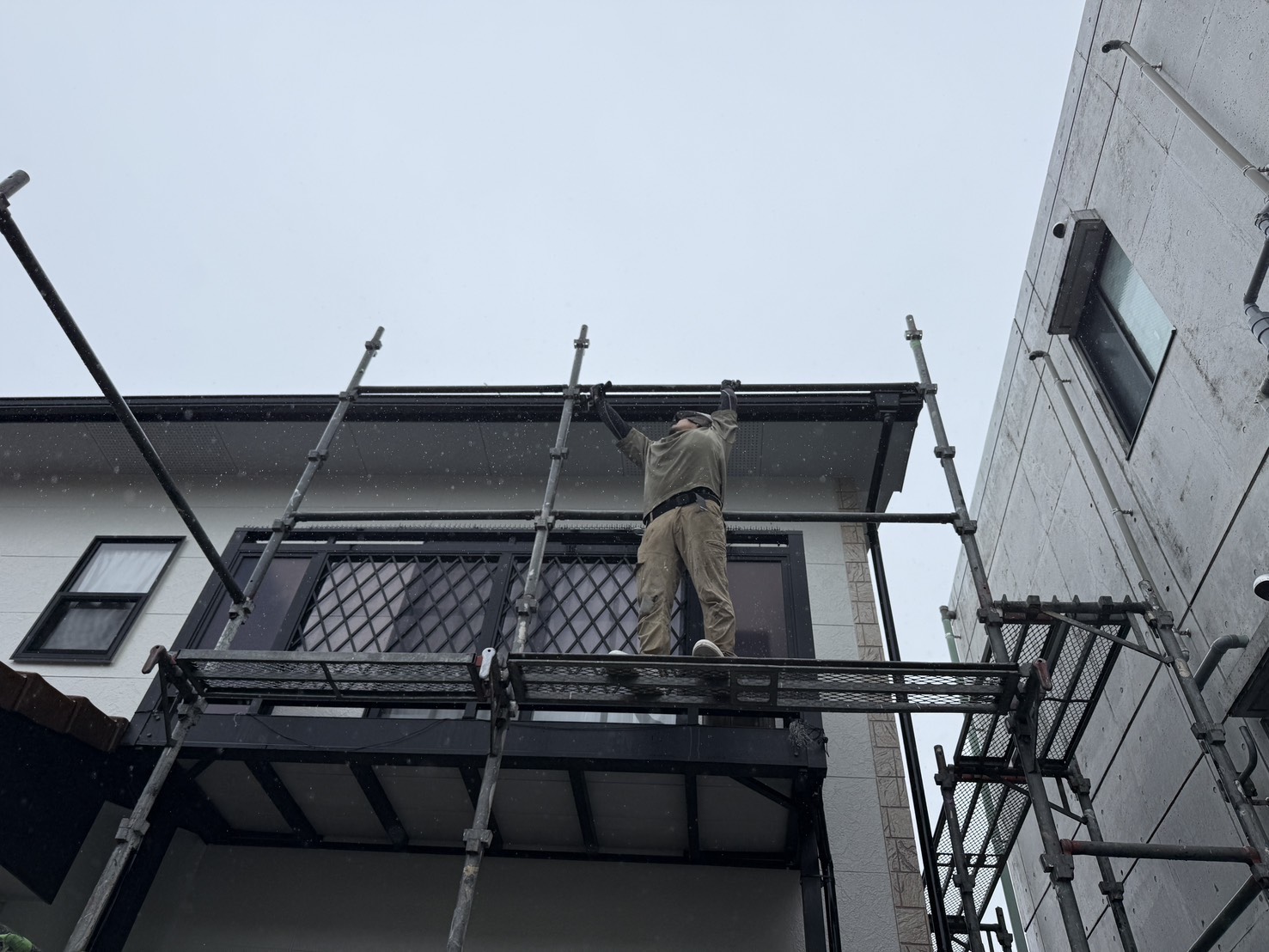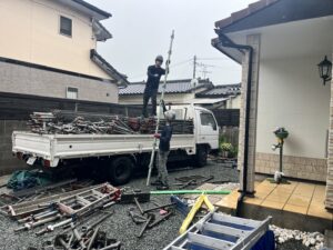 外壁・最終検査確認後、架設足場解体・片付け・積み込みの施工です。