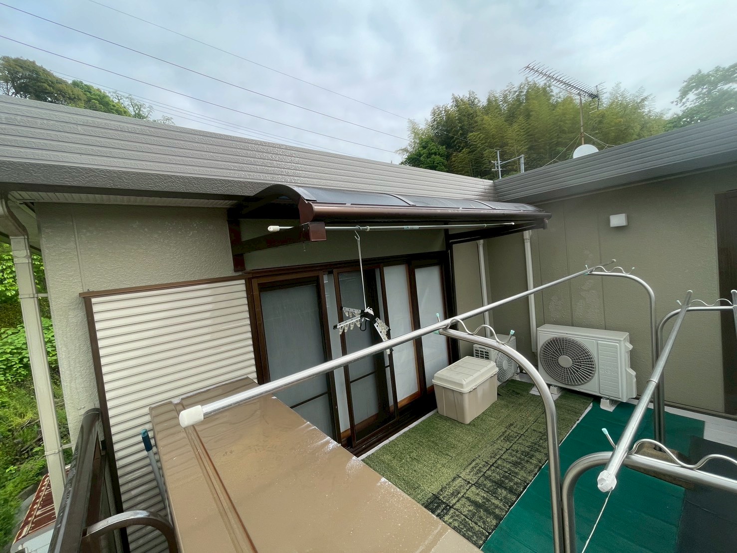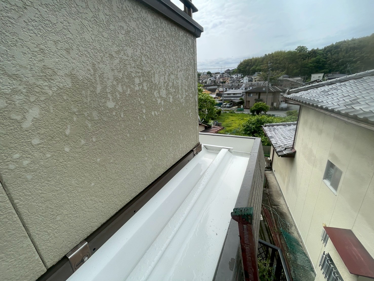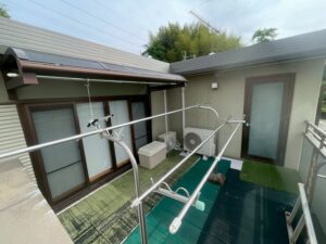 屋根・1F部・ベランダ廻り:エスケープレミアム無機ルーフ遮熱塗料仕上がりです。(スノーホワイト)