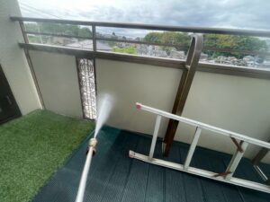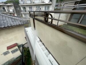 外壁・ベランダ外側・高圧洗浄施工です。