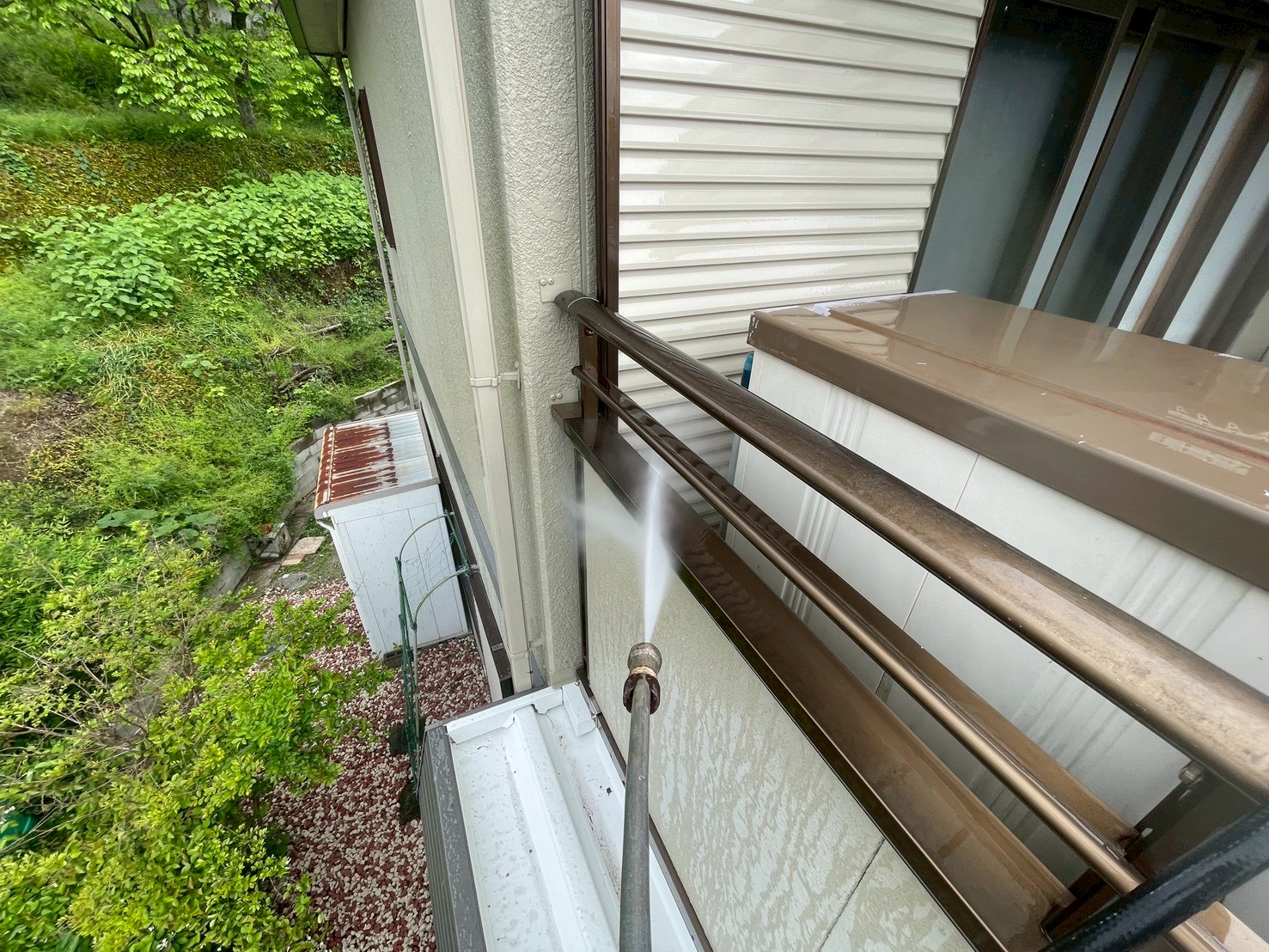 外壁・ベランダ内側・高圧洗浄施工:きれいになりました。
