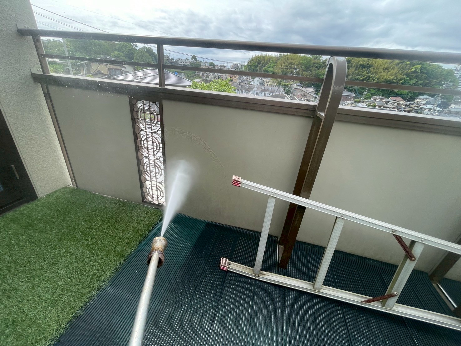 外壁・ベランダ外側(アルミテラス)・高圧洗浄施工です。