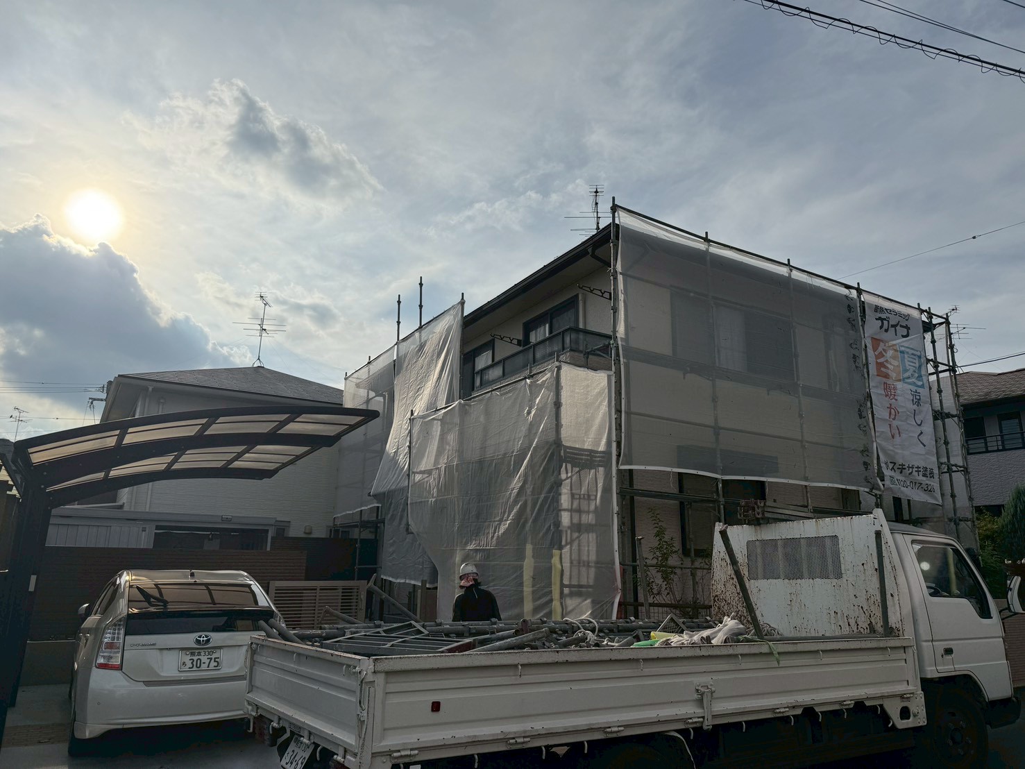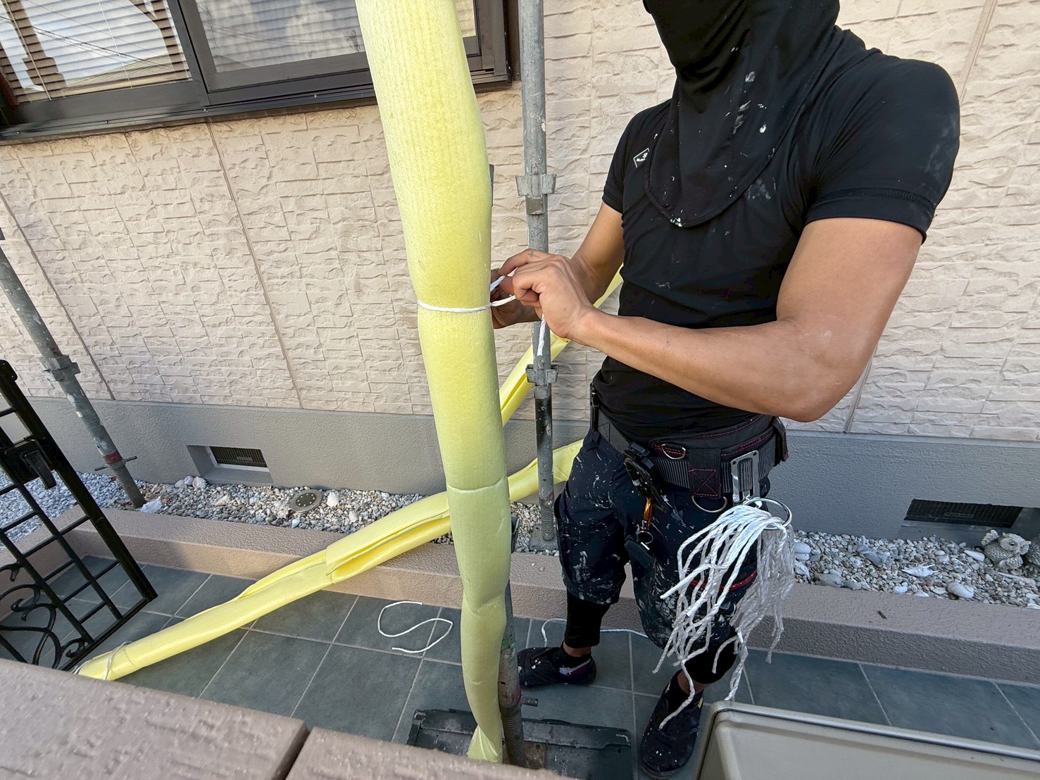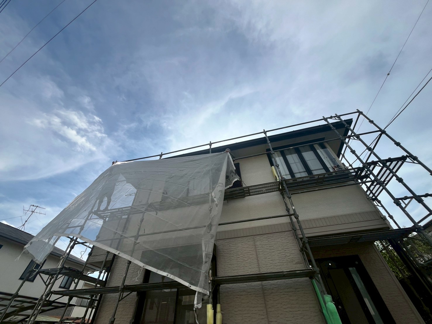 本日の作業は、外壁・コーキング打ち替えと窓廻り養生施工です。